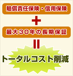 施工後、最長30年間※1の長期にわたる保証制度が実現するライフサイクルコスト※2の低減!長い目で見た、建物の一生にかかるトータルコストを大幅に低減できます。大切な資産である「建物の長寿命化」をコストの面からも支援します!